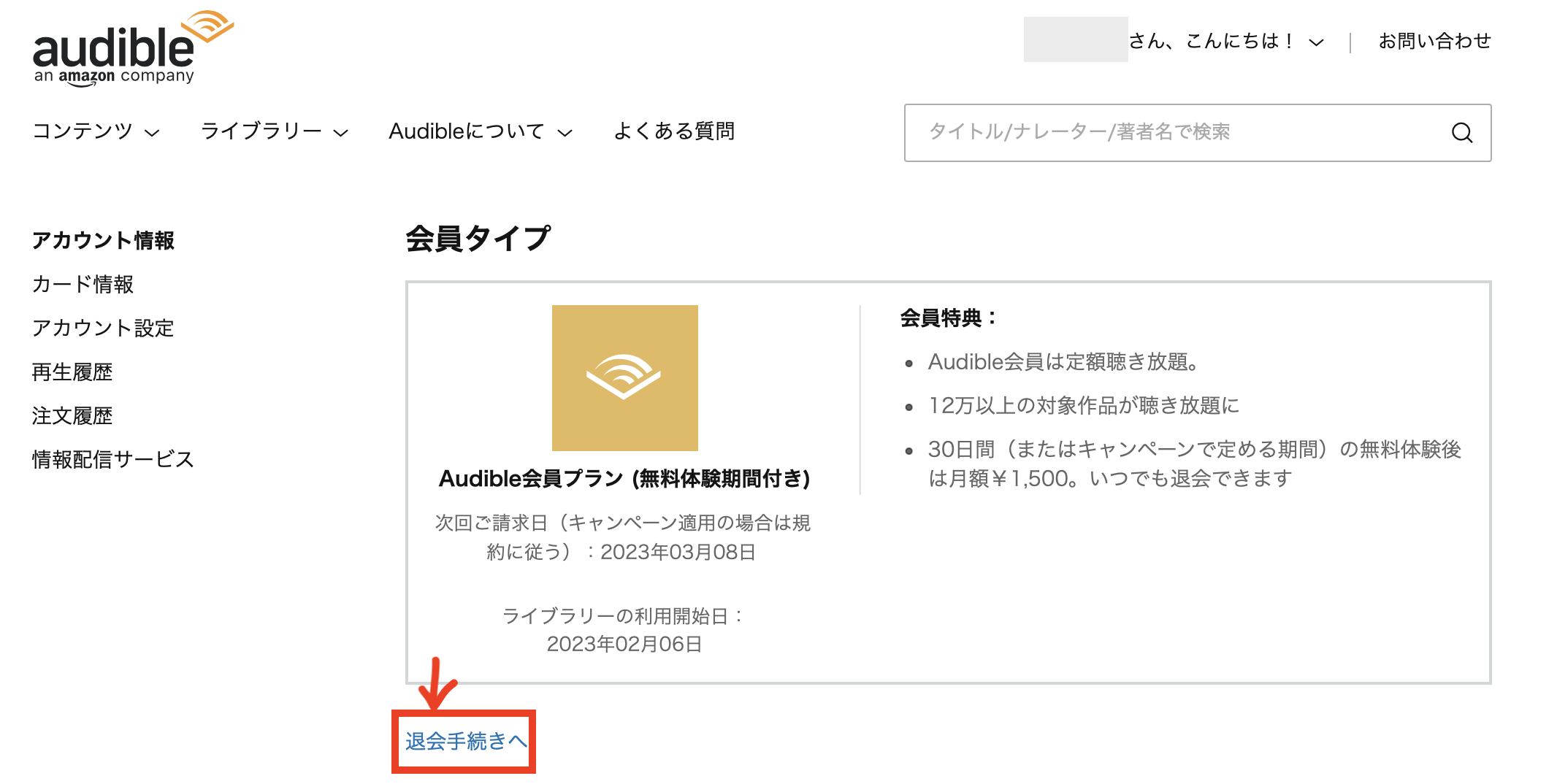 オーディブルを解約しても、次回請求日までは引き続き利用できます。